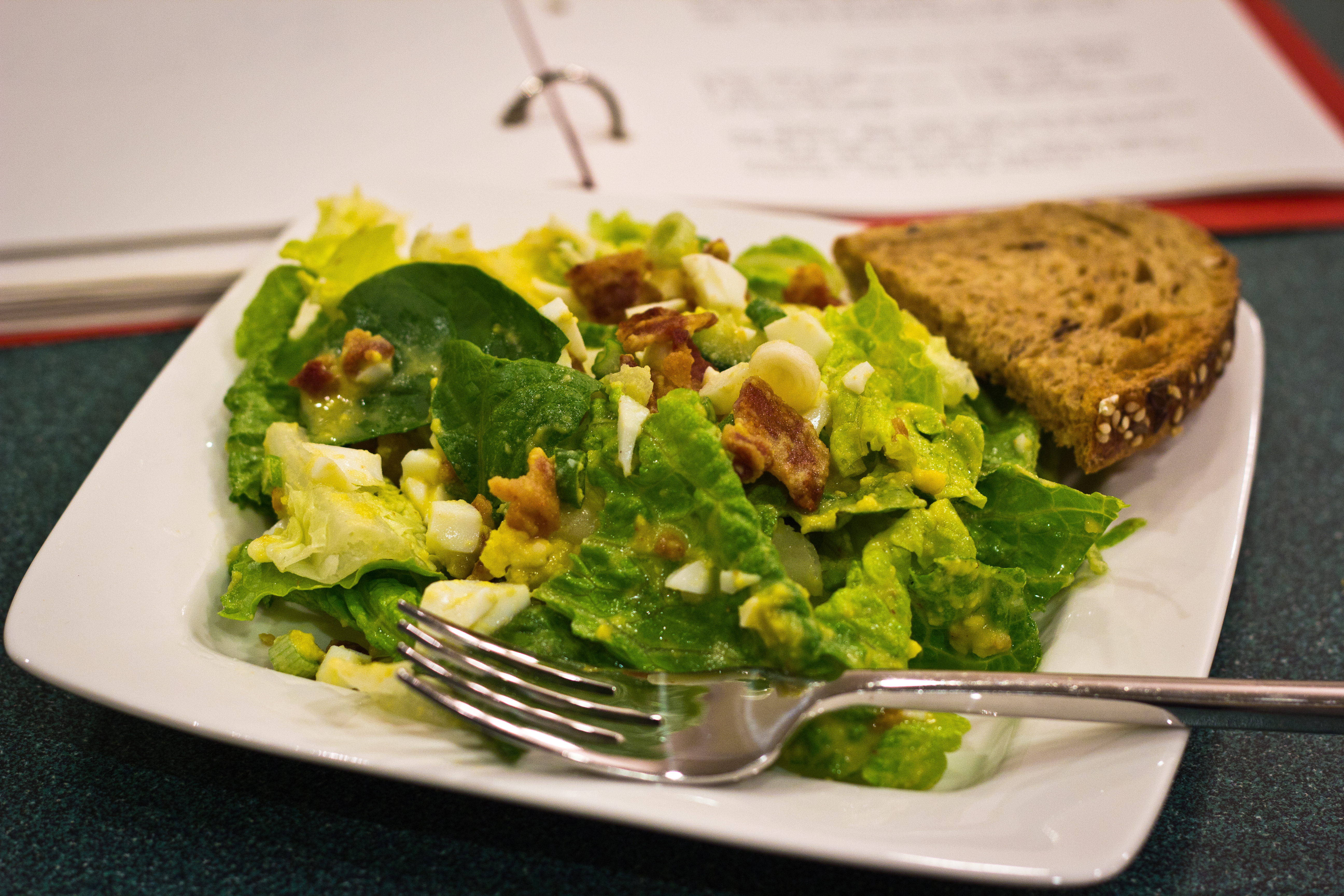 The same goes for Grandma’s Romaine Salad with Egg Mustard Dressing recipe. Her recipe call for ⅓ bacon drippings. I’m not sure if it’s ⅓ of a cup, ⅓ of what I get from cooking the bacon, or ⅓ of something else. I made up my own amount while trying to keep the fat down.